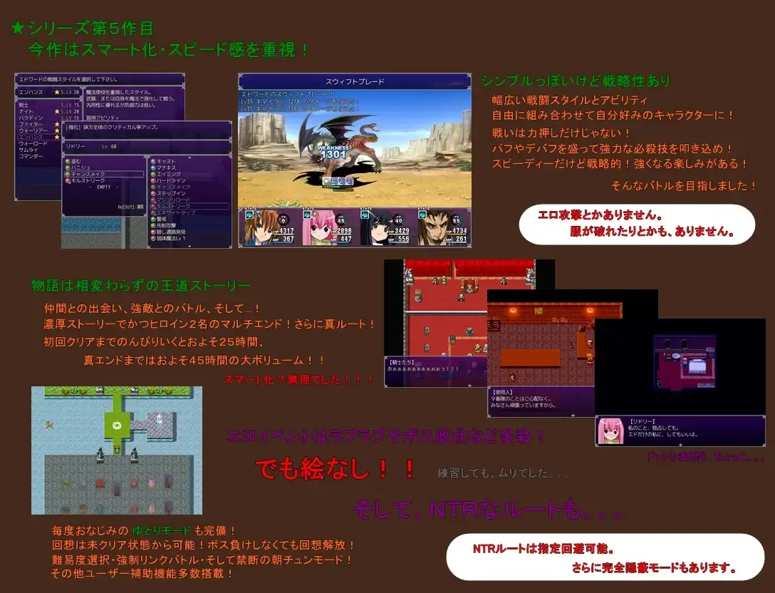 18禁事件包括爱情、败北凌辱、NTR路线等。