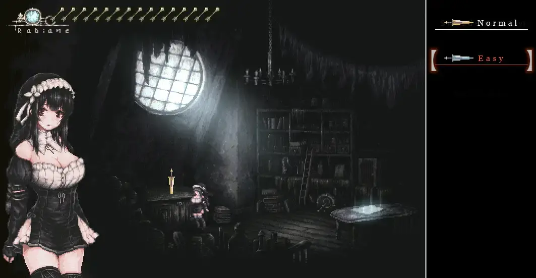 这是个被教会派遣至诅咒之地的修女「拉碧安」努力退治魔物的,简单的2D动作游戏。