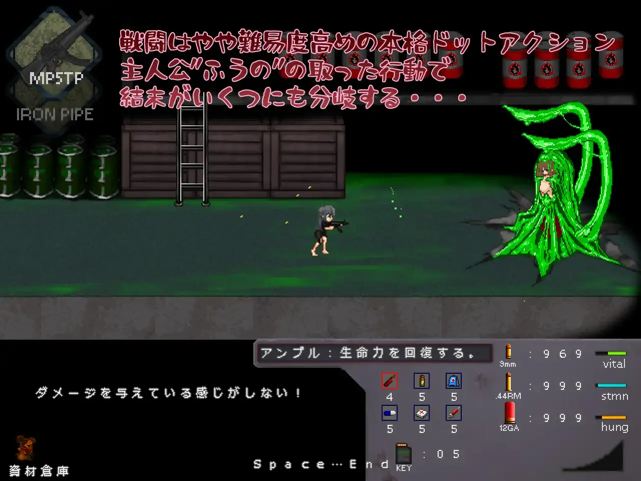 醒来时身处未见黑暗独房。操作主角『ふうの』从诡异生物满布岛屿逃脱。