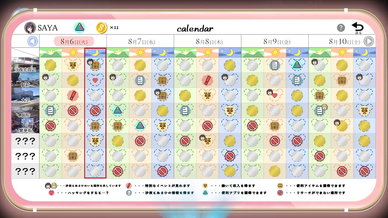 在日曆中可以透过特定的APP来改变女主角所在的地点。